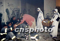紐約世界貿(mào)易中心慘案發(fā)生后,慈善組織、宗教團(tuán)體和志愿人員紛紛加入救援慰問(wèn)行列。圖為她們正在給累得精疲力竭的消防人員送水和食品。中新社圖