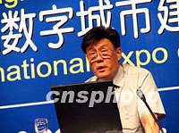 中國科學院副院長江綿恒出席十八日在廣州舉行的“中國國際數字城市建設技術研討會暨二十一世紀數字城市論壇”,圖為江綿恒在開幕式上致辭。中新社圖 梁永強 攝