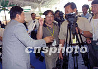 第六屆世界華商大會中國經濟論壇十九日在南京國際會展中心舉行,由于采訪的記者人數較多,主辦者只得采取發號入內采訪的措施,每人拍攝只限三分鐘。中新社記者 史利 攝