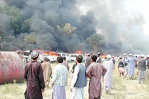 圖文:阿富汗反美大示威中有12名警察受傷 2001年09月27日 11:10 ![]() 示威者圍觀美國大使館內(nèi)狂燒的車子。路透社 圖 中新網(wǎng)香港9月27日消息:幾千名阿富汗示威者昨天闖入美國駐阿富汗大使館,放火焚燒遭丟棄的汽車,火勢波及大使館的外圍建筑,但主樓并未受破壞。 塔利班士兵同大使館內(nèi)外暴亂的示威者發(fā)生沖突,消防員最終把火勢控制住。喀布爾警察首腦尤努斯說,12名警察在設(shè)法控制暴亂時受傷。他說:“我們盡力避免這樣的事情發(fā)生,但示威者的人數(shù)使我們不可能成功。他們有幾千人。” 38歲的示威者烏拉說,示威的目的是向美國發(fā)出信號。“我們干得好。”這名店主說,“美國要燒掉我們的國家,所以我們焚燒他們的大使館。” 美國駐阿富汗大使館自1989年起就無人駐守,只保留了一些阿富汗雇員負(fù)責(zé)維修等有限的工作。據(jù)悉,這次示威是美國遭襲以來喀布爾發(fā)生的最大規(guī)模反美事件。 |