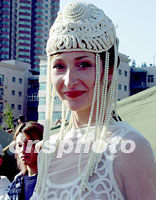 來自俄羅斯的模特,日前在青島舉行的2001中國青島時裝周上進行服裝展示。中新社記者 錢興強 攝