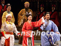 十月三日晚,北京人藝開始新一輪的演出,上演由著名演員徐帆(前右二)、濮存昕(右一)等擔綱的歷史名劇《蔡文姬》,為節日的京城舞臺增添絢麗色彩。中新社記者 毛建軍 攝