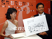 澳門政府4日邀請香港巨星周潤發出席"第十五屆澳門國際音樂節"中的臥虎藏龍音樂會,澳門文化局局長何麗鉆向發仔贈送紀念品。中新社圖 任晨鳴 攝