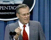 美國東部時間十月七日上午,美國國防部長拉姆斯菲爾德在五角大樓的新聞發布會上說:美國今天對阿富汗進行軍事攻擊,目標是讓恐怖分子無法再使用塔利班作為他們的港灣。攻擊目標主要是塔利班的機場,還有其它的軍事設施和軍事基地。