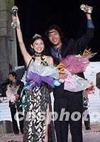 由海南省三亞市人民政府和新絲路模特經紀有限公司主辦的2001新絲路中國模特大賽總決賽,十三日在三亞亞龍灣廣場舉行,來自大連的男選手張信哲獲亞龍灣杯男模大賽冠軍,來自廣西16歲的甄妮小姐獲天涯海角杯女模大賽冠軍。中新社記者 錢興強 攝