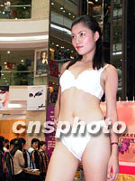 周日廣州舉辦一場“秋醉伊人”二零零一年秋冬女士時尚潮流展示會,模特在演繹最顯女士魅力的內衣。中新社圖 劉衛勇 攝
