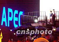 上海舊燈塔上的咖啡館被十月APEC會議的霓虹燈映照,這座具有百年歷史的黃浦江岸燈塔,如今頗為新潮人士所光顧。中新社記者 賈國榮 攝