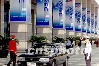十四日下午,上海國際會議中心開始實施戒嚴管制,只有與APEC會議有關人員方可出入。從十五日開始,這里將舉行亞太經合組織高官會等一系列APEC重要會議。中新社記者 毛建軍 攝