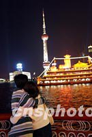 圖:APEC氛圍中的上海外灘情侶