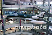 上海舉行APEC會議期間,一家高檔商場在大堂內懸放一架退役飛機,喻示生意興旺與經濟發展。中新社記者 毛建軍 攝