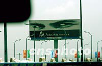 16日在上海APEC會議高潮到來之際,民航上海地區出臺了一系列新的安全管理措施,在通往浦東國際機場的高速路上,畫有一雙警惕雙眼的廣告牌頗具象征意義。中新社記者 王瑤 攝