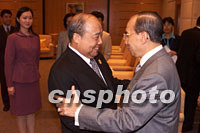 中國對外經濟貿易合作部長石廣生十六日在上海國際會議中心會見前來參加APEC會議的文萊工業與初級資源部長塔伊布。中新社記者 毛建軍 攝