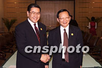 中國外交部長唐家璇十六日在上海國際會議中心會見前來參加亞太經合組織(APEC)會議的泰國外交部長素拉革·沙提拉泰。中新社記者 毛建軍 攝