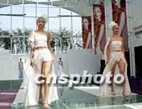 斥資五億元人民幣興建的中國(guó)南海國(guó)際內(nèi)衣城,十六日上午在中國(guó)內(nèi)衣產(chǎn)業(yè)的發(fā)祥地南海市鹽步區(qū)奠基;內(nèi)衣城的縮影建筑霓裳會(huì)同時(shí)落成揭幕,內(nèi)衣模特在霓裳會(huì)的展示臺(tái)上演繹內(nèi)衣文化。中新社圖 辛述之 攝