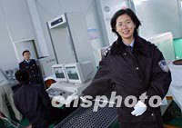 17日上海降溫刮起秋風(fēng),在國(guó)際新聞中心負(fù)責(zé)安檢的女警員換上風(fēng)衣抵御瑟瑟秋風(fēng)。中新社記者 王瑤 攝