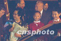 香港特首董建華和夫人十七日晚飛抵上海虹橋機(jī)場(chǎng)出席APEC峰會(huì),國(guó)家計(jì)委主任曾培炎帶領(lǐng)獻(xiàn)花兒童到飛機(jī)前迎接。中新社記者 賈國(guó)榮 攝