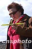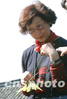 出席APEC雙部長會議的部長夫人們十八日到千年水鄉(xiāng)古鎮(zhèn)朱家角參觀游覽,中國臺北“經(jīng)濟部長”夫人葉美吟對當?shù)氐牟菥幭X蟈愛不釋手。中新社記者 王瑤 攝