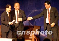 亞太經合組織工商領導人峰會(APEC CEO)十八日下午在上海開幕,中國國務院副總理錢其琛、上海市長徐匡迪、中國貿促會會長俞曉松等出席開幕式。中新社記者 毛建軍 攝