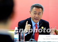 中國香港工商局長周德熙十八日在上海國際新聞中心說,上海和香港是飛機的兩個翅膀,它們共同為中國經(jīng)濟的騰飛努力。中新社記者 劉殊瑾 攝