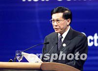 泰國(guó)商業(yè)部長(zhǎng)Adisai Bodharamoik十九日在上海舉行的亞太經(jīng)合組織工商領(lǐng)導(dǎo)人峰會(huì)上發(fā)表演講。中新社記者 毛建軍 攝