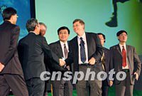 微軟公司董事會主席比爾·蓋茨十九日在上海出席“Windows XP之中國序曲”活動,并與聯(lián)想總裁楊元慶、TCL集團(tuán)董事長李東生、長城計算機(jī)公司董事長王之等人共同探討新商機(jī),暢談數(shù)字生活的美好前景。中新社記者 王瑤 攝