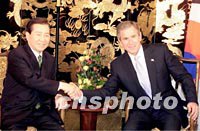 圖:美國(guó)總統(tǒng)布什會(huì)見韓國(guó)總統(tǒng)金大中