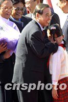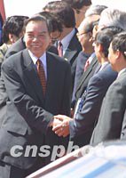 參加APEC領(lǐng)導(dǎo)人非正式會議越南總理潘文凱(左一)十九日中午到達(dá)上海浦東機(jī)場。中新社圖 劉殊瑾 攝