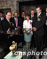 墨西哥總統文森特·福克斯與上海市市長徐匡迪十九日在上海博物館為墨西哥瑪雅文明珍品展揭幕。中新社記者 潘索菲 攝