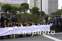 二十日在上海浦東陸家嘴金融貿易區上班的職員,必須在警察設立的臨時專用臺前登記,以確保APEC領導人峰會的安全。中新社記者 潘索菲 攝