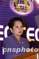 菲律賓總統阿羅約二十日在上海香格里拉飯店舉行的亞太經合組織工商領導人峰會上發表演講。中新社記者 毛建軍 攝