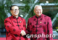 10月21日,中國國家主席江澤民在上?萍拣^迎接中國香港特別行政區行政長官董建華。亞太經合組織第九次領導人非正式會議在這里舉行。中新社圖