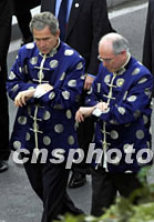 10月21日,出席亞太經(jīng)合組織領導人非正式會議的澳大利亞總理霍華德與美國總統(tǒng)布什不約而同看時間。中新社圖