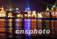 十月二十一日夜,上海外灘燈火通明映照浦江,APEC峰會在此間的上?萍拣^落幕。中新社記者 賈國榮 攝