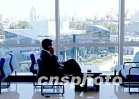 一名出席上海十月APEC會議的工商界人士,坐鎮(zhèn)于浦東的明亮大廈中打手機電話通信息。日前閉幕的APEC會議為亞太地區(qū)拓展了商機。中新社記者 賈國榮 攝