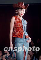 中國的傳統“肚兜”,被詮釋為由水貂和牛仔布V紋的新款,款式順應了中國風的時尚潮流,讓具有漂亮身段的年輕女孩更加風采。圖為北京舉辦的SAGA皮草飾邊時裝設計比賽作品。中新社記者 錢興強 攝