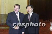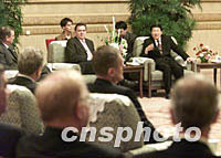 國務院總理朱镕基與德國總理施羅德三十一日在北京共同會見隨同施羅德訪華的德國企業家。中新社記者 滿會喬 攝