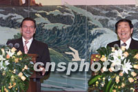 國務院總理朱镕基與德國總理施羅德三十一日在北京共同會見記者并回答記者提問。中新社記者 滿會喬 攝