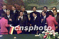 國務院總理朱镕基與德國總理施羅德三十一日在北京共同出席中德雙方合作協議的簽字儀式。中新社記者 滿會喬 攝
