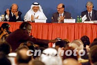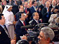 卡塔爾特寫:中國入世,一次空前的"盛宴"(附圖) 2001年11月11日 18:46 ![]() 第四屆WTO部長會議十日晚在卡塔爾首都多哈舉行會議正式通過中國入世。圖為會議主席臺。中新社記者 錢興強 攝 ![]() 卡塔爾財政、經濟和貿易大臣Youssef Hussain Kamal先生在多哈一槌落下宣布通過中國加入WTO時,多哈WTO第四次部長級會議的全體代表鼓掌向中國代表團表示祝賀。