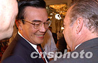WTO第四屆部長級會議11日在多哈審議通過中國臺北加入WTO的決定,中國臺北代表林信義接受祝賀。中新社記者 錢興強 攝