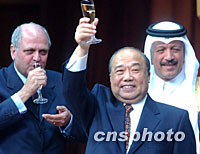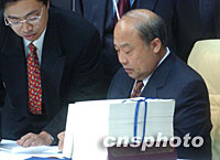 中國加入WTO走完第二道程序 議定書正式簽字 2001年11月12日 00:31 ![]() 中國加入WTO議定書簽字儀式于北京時間12日凌晨在多哈舉行,石廣生部長簽字后同各國代表一起舉杯慶祝中國成為WTO大家庭中的一員。中新社記者 錢興強 攝 ![]() 中國代表團團長石廣生于當?shù)貢r間11日晚在多哈簽署中國入世議定書。中新社記者 錢興強 攝