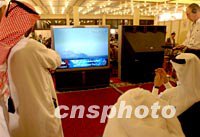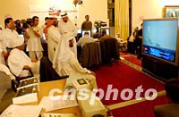 正在卡塔爾多哈采訪WTO會(huì)議的各國記者得知美國一民航機(jī)墜毀后圍在電視大屏幕前關(guān)注這一突發(fā)事件。中新社記者 錢興強(qiáng) 攝