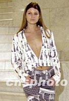 日前,在日本東京舉行的2002年春夏時裝發表會上,模特展示新款作品 。中新社記者 陶光雄 攝