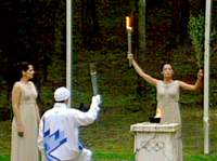 圖文:鹽湖城冬奧會火炬傳遞將經46個州歷時65天 2001年11月20日 15:26 ![]() 2002年美國鹽湖城冬季奧林匹克運動會火炬19號在希臘的奧林匹亞山上點燃,希臘女演員塔利亞·普羅科皮約裝扮的希臘女神手捧奧運圣火火種,開啟了慶典儀式。