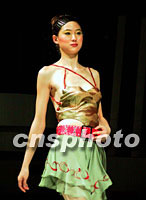 第六屆中國(guó)(虎門)國(guó)際服裝交易會(huì)于十一月十六日至二十一日,在廣東東莞虎門鎮(zhèn)舉行。每天吸引幾千名全國(guó)各地的人前往觀看時(shí)裝表演。圖為模特展示迷你肚兜。中新社圖 劉衛(wèi)勇 攝