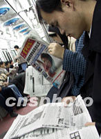 中國加入世界貿易組織后,北京各行業調整改革步伐加快,市民十分關注入世后市場動向,在地鐵經常能看到人手一報的情景。中新社圖 王麗南 攝