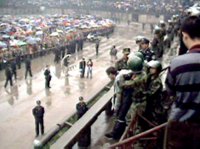 湖北警方日前破獲一起涉嫌黑社會性質的犯罪集團。該集團依靠販賣文物、開設賭場、強買強賣等黑社會手段,犯下多起刑事案件。圖為該集團被公審時萬人空巷的場面。