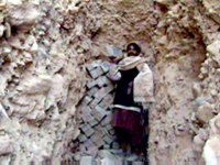 阿富汗北方聯盟一名士兵十二日在拉登基地組織的一個山洞前拆除洞口障礙。在北方聯盟的強大攻勢下,一些“基地”組織的成員開始繳械投降。