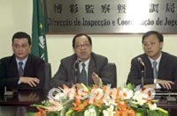 譚伯源:將建議何厚鏵延長澳門現有博彩專營合約 2001年12月15日 08:04 ![]() 澳門特區政府財政經濟司司長譚伯源,十四日在新聞發布會上向記者介紹有關審察博彩競標標書的最新進展情況時表示,將建議行政長官把現有的博彩專營合約延長三個月。中新社傳真 宗金柱 攝