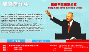 圖文:董建華競(jìng)選網(wǎng)站將推出 可與市民電郵互動(dòng) 2002年01月15日 15:02 ![]() 董建華的競(jìng)選網(wǎng)站目前仍在建設(shè)中。 中新網(wǎng)香港1月15日消息:香港行政長官董建華的競(jìng)選網(wǎng)站()將在本星期面世,目前網(wǎng)頁的設(shè)計(jì)已大致完成,現(xiàn)正進(jìn)行測(cè)試。 網(wǎng)站的主要內(nèi)容則包括介紹董建華生平、董宣布參選連任時(shí)的演辭撮要、辦公室發(fā)出的新聞稿、辦公室安排的競(jìng)選活動(dòng)、與市民的互動(dòng)電郵服務(wù)等。 董建華競(jìng)選辦公室公關(guān)組副主任楊志剛表示,在競(jìng)選網(wǎng)站上有互動(dòng)“電郵”連結(jié),市民一按便可以直接聯(lián)系到他們,發(fā)表意見。 董建華于2001年12月13日正式宣布參加競(jìng)選第二任香港特別行政區(qū)行政長官。 |